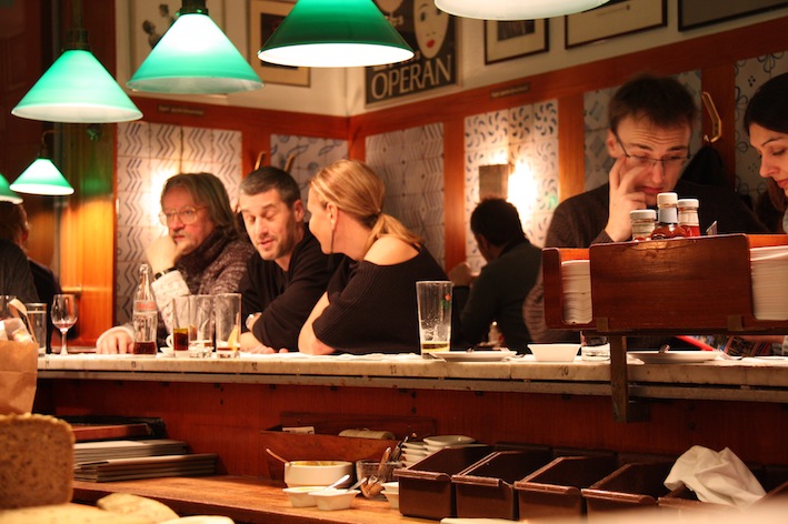 Siamo a Stoccolma, nell’estremo meridionale di Norrmalm, a due passi dalle belle stradine medievali di Gamla stan. Proprio qui, all’interno del palazzo della Royal Opera House, nel quartiere che è oggi considerato il cuore commerciale della città, si trova il Bakfickan, un ristorantino tradizionale di grande fascino e poche pretese il cui nome in svedese significa letteralmente “la tasca posteriore” alludendo probabilmente alla sua posizione rispetto all’Opera. E si tratta di una ben piccola tasca, considerato che può ospitare appena 28 coperti tra i classici tavolini e i bellissimi sgabelli posti a ferro di cavallo intorno al bancone. L’atmosfera è intimamente semplice, e si ha quasi l’impressione di trovarsi tra commensali abituali, tra amici che non si vedono da un po’, magari appena usciti dal lavoro, in una giornata ordinariamente felice. Il perché poi gli svedesi mi sembrino sempre tutti felici è un bel mistero, ma facciamo che ci piace immaginarli così, ordinariamente felici e punto.